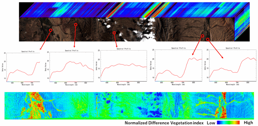 AE2aミッションでは、福井大学青柳准教授が開発したハイパースペクトルカメラによる可視光域の観測を通じて、植生など地表面の状態把握に関するデータ取得を実現しました。